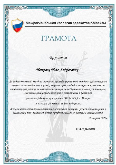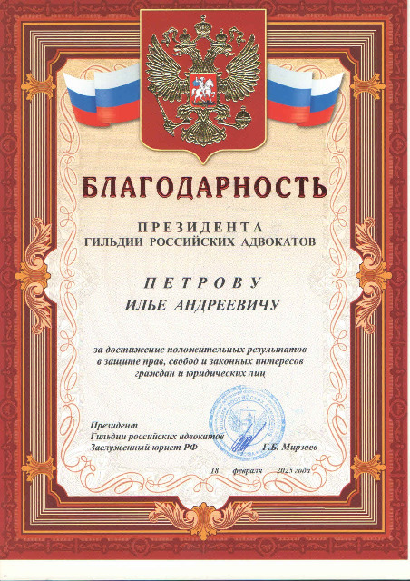 Главная Реестр адвокатов Обслуживание физических лиц Уголовные дела, адвокат по уголовным делам Адвокат Петров Илья Андреевич