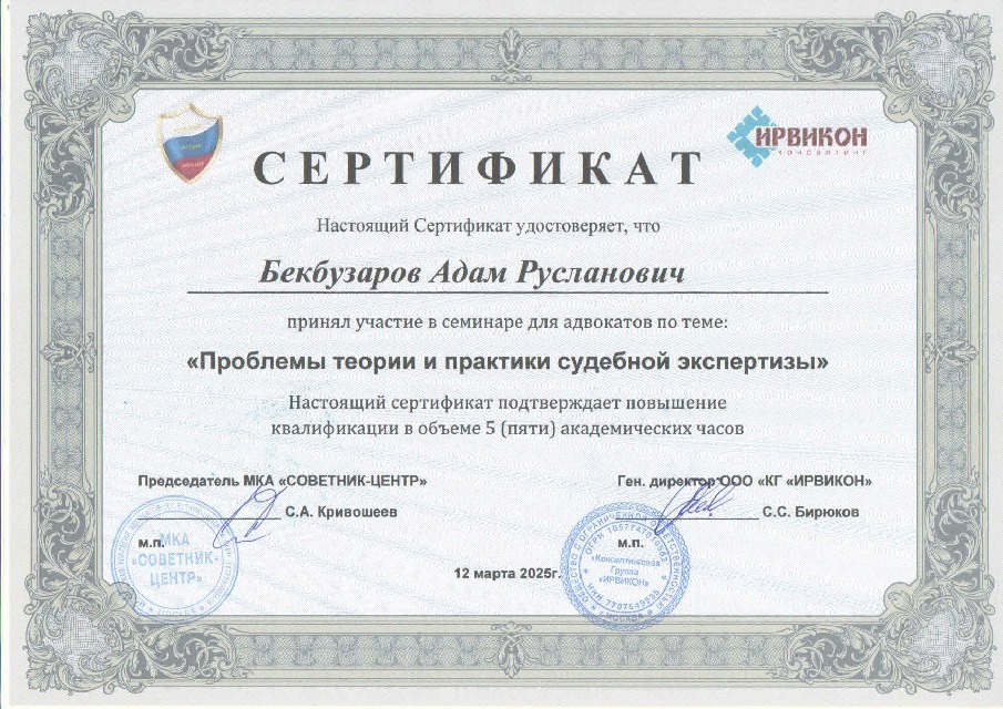 Адвокат Бекбузаров Адам Русланович