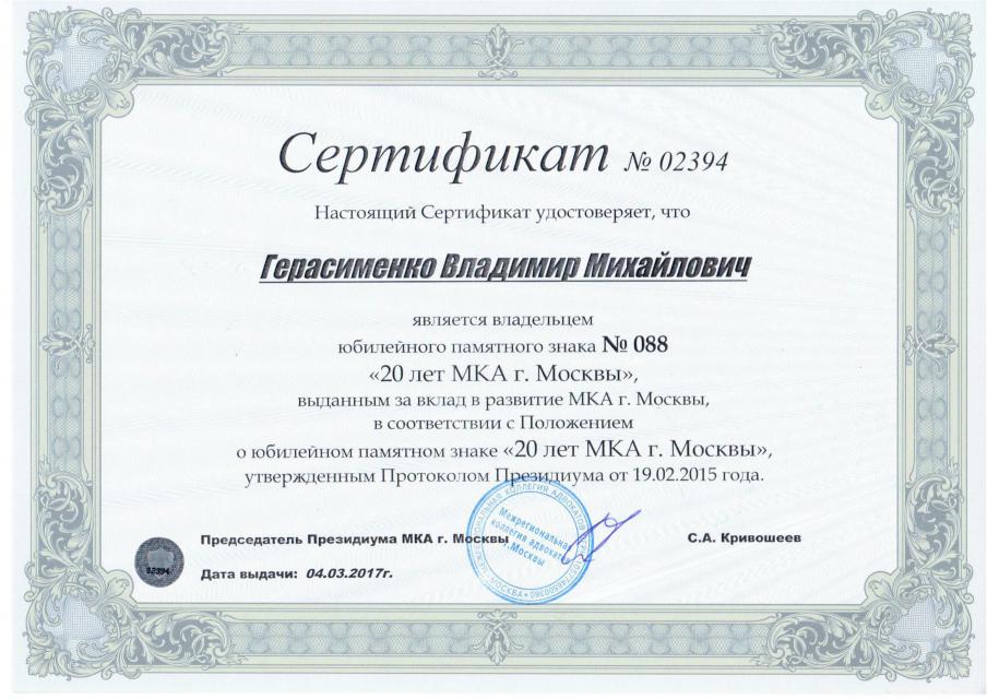 Адвокат Герасименко Владимир Михайлович