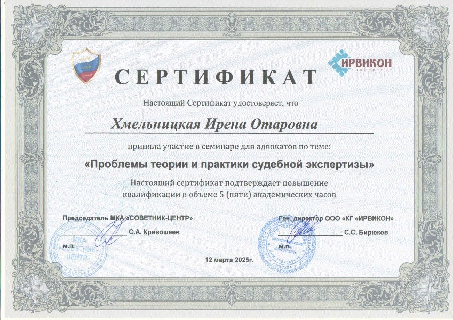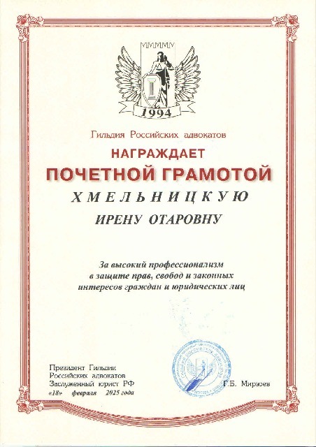 Адвокат Хмельницкая Ирена Отаровна